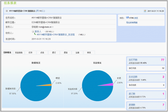 在这里可以看到关于该任务统计的详细信息。能够非常效的帮助您分析该次EDM情况。
