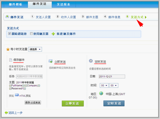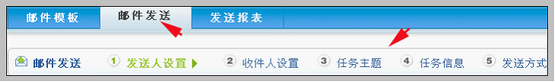 说明 邮件发送环节,包括5个步骤:发送人设置、收件人设置、任务主题、任务信息、发送方式。如下图: