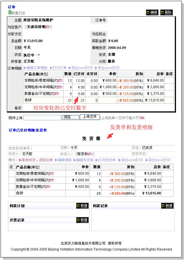看到订单视图内的发货单,发货完成