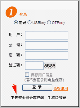 即使没有使用key,也建议客户使用安全登录客户端,因为这种方式会给使用软件带来更大的便利。 下载和安装安全登录客户端 在登录位置下载 进入云登录首页,在登录界面看到下载安全登录客户端,如下图: