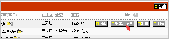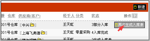 由于上面的操作,使入库明细的数量发生了变化,该入库单所对应的采购单会自动判断没有入库完成, 并在操作区域出现“再次生成入库单”的按钮,库管人员可看到。如下图: 查看该采购单的入库情况方法是:点击该采购单的采购主题字段。看到该采购单明细,如下图所示: 在这个界面中可看到该采购单对应的入库情况,如果是分多次入库,可显示多个入库记录。 |