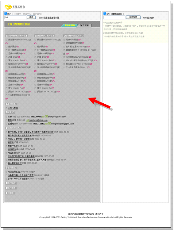 注意:下面的客户服务控制台被切换到客户信息界面。