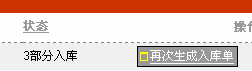 从例图上可以看出,采购单状态为部分入库时,出现“再次生成入库单”的按钮。 此时,采购人员可以在剩余货物再次到达时,点击再次生成入库单按钮,实现一个采购单多次入库。 |