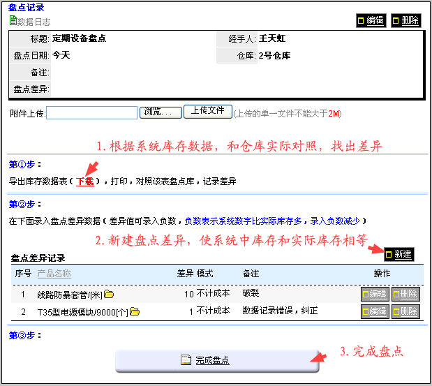 为什么要盘点? 仓库盘点就是清点库存。看实际的库存与CRM中上的库存是否一致。 如果不一致,通过盘点差异明细使之达到一致。 比如:仓库中产品A有52件,而CRM账目中有53件; 库管人员查明原因后,在盘点明细中记录一条(A产品 -1)盘点明细,并表明原因。 这样CRM中记录的数量也变为52。 对于仓库管理人员来说,有差异时,需弄清楚差异原因,才是盘点的真正目的。而不是仅仅为了使两个数字相等。 仓库盘点的方法 进入仓库管理-盘点,点击“创建盘点记录”,如下图: 填写盘点主题,选择仓库 保存后,可看到该盘点记录后面操作区域的“录入盘点差异” 在这个界面,可下载系统库存值,并把系统中的库存记录和实际库存对比,通过新建盘点差异的方法完成对盘点中有差异的产品数字变更,完成盘点。 |