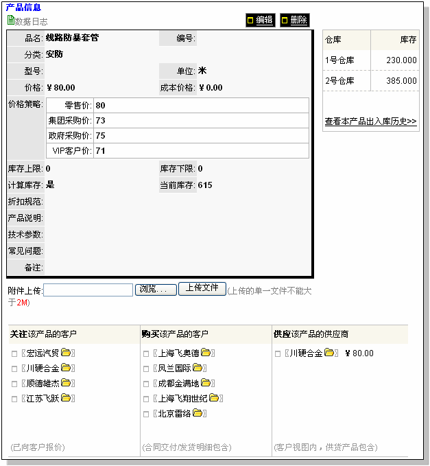 以及:关注该产品的客户(给客户有报价),购买该产品的客户(合同交付和订单明细),供应该产品的供应商(客户视图内供货产品)