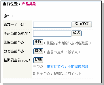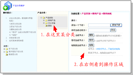 | 2. | 点击根分类 “产品类别” ,看到右侧出现对分类的操作界面