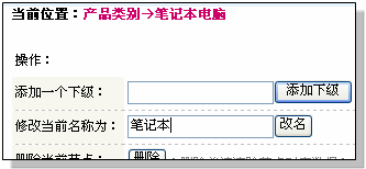添加一个下级分类,如:“笔记本电脑”,操作方法是: