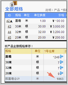 在这部分,我们明确了其他规格和基准规格需要设定的单位换算关系。多种规格产品可以按照一种统一的计量单位计算总库存,如下图: