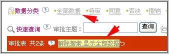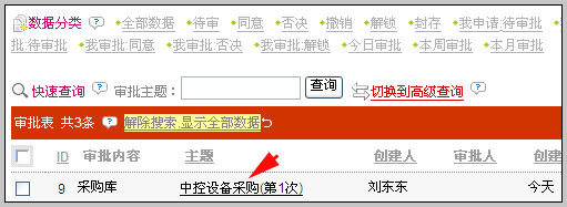 同意后,此数据在审批列表中消失。实际上是审批状态发生了变化,当前列表是过滤条件的(今日待审批,点击“解除搜索”或者数据分类中的“全部数据”,即可看到刚审批同意的那条数据,如下图: