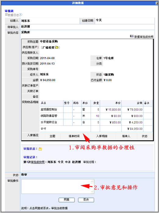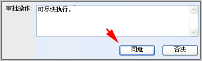 审批人在这个界面上可以看到申请审批数据的详细信息。查看详细信息的合理性,并审批“同意”或者“否决”。方框内可以写一些审批意见,也可以不写。 如果同意,则点击“同意”钮。