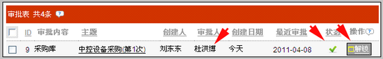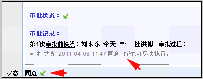 看到此数据的审批状态已经变为同意,审批人也已经记录下来。如下图: