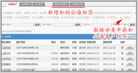 | ● | 数据分类中添加“公海客户”标签,可快速筛出全部的公海客户。 |