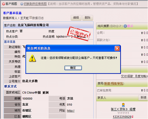 拥有公海管理员权限的用户,客户权限比较的特殊,因为公海管理员需要对系统中全部的客户进行公海操作,所以在“全部客户”标签中是可以看到系统中全部客户。具体的客户权限如下: