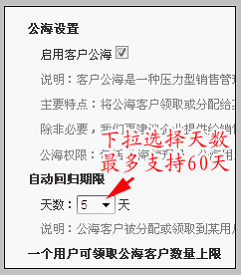 公海客户自动回归期限是指公海客户自动返回“公海客户池”的天数。销售人员在有限的期限内对客户进行跟单,到期仍未签约,该公海客户将自动返回至“客户公海池”中。