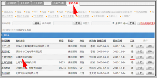 操作完成后我们看到客户“天津市祥明仪表厂”已为公海客户,可在“客户公海”标签下查看到该公海客户。 如下图: