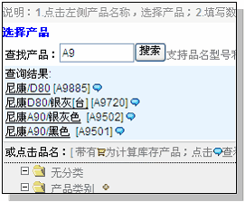报价单、订单、发货单的产品明细编辑均支持对编号的查询。