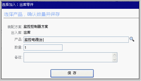 选择产品:监控电源,数量是1,点击保存。界面如下: