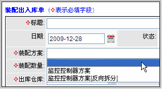 允许反向拆分的方案,在启用后,将在新建装配出入库单时显示,如下图所示: