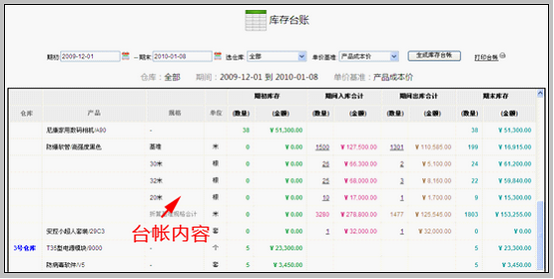 确认好参数后,点击生成库存台帐。即可看到相应表格内容。如下图所示: