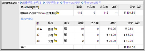 编辑明细完成的采购单如下图所示: