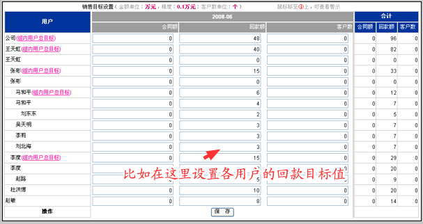 设置目标时,请注意:1.目标单位是万元,精度为0.1万元 2.组内目标值应等于组内各用户之和。