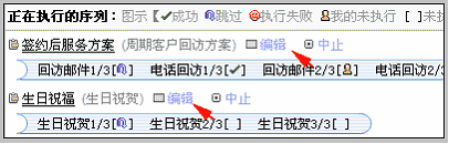 在客户视图内,看到正在执行的SFA序列,每个序列后面都有编辑功能,如下图: