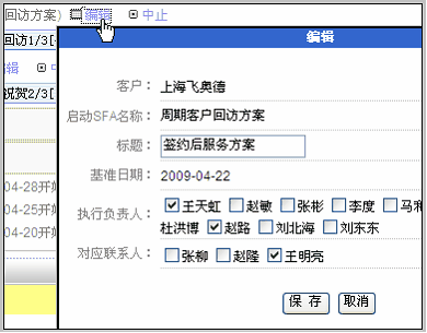 在这个界面,可以编辑标题、执行负责人和对应联系人。保存后,没有执行的事件会随之变化(包括执行人和对应接收联系人)。