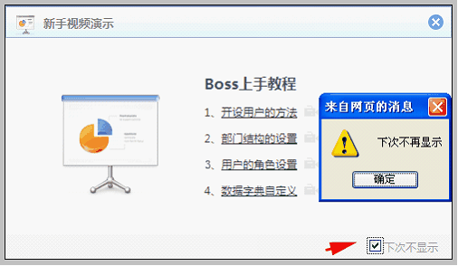 勾上以后,登录后就不再提示,如想再次查看,在工作台左侧“视频演示”,如下图: