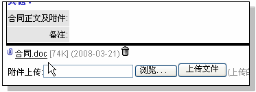 在合同视图中,可以直接把合同文本(比如word文档)作为附件上传到系统中,如下图所示: