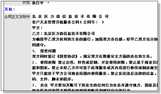 可以把文本保存在该字段中,适用于没有特殊格式和表格的合同,如下图所示: