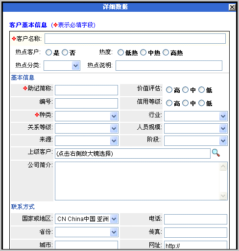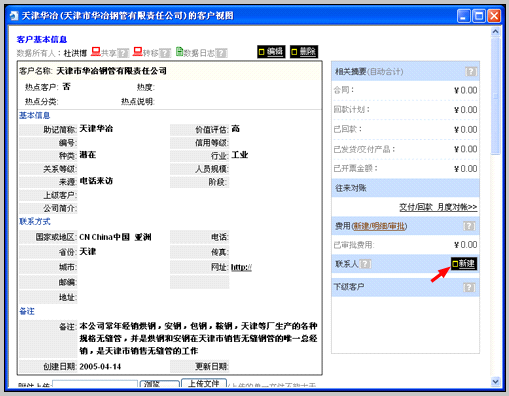 内继续录入客户联系人等相关其他信息