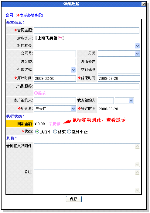 回款金额字段:不可输入,由该合同的回款记录自动汇总得出。