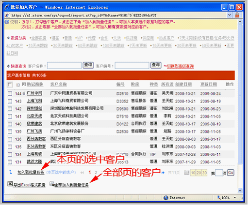 点击确认加入即可看到提示:加入成功,直接进入该批量客户任务。至此,客户加入过程完成。批量任务界面中,我们可以看到刚加入的客户在视图下方分页显示,如下图: