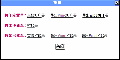 点击相应的打印功能即可。具体的方法和订单中打印各种单据的方法完全一致。 |