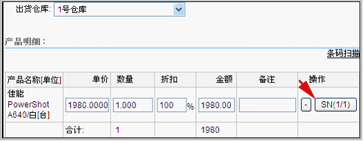 由于店面型销售单在客户购买时就已经确定了是买哪一个具体的产品,所以序列号在建立店面单时必须确定。