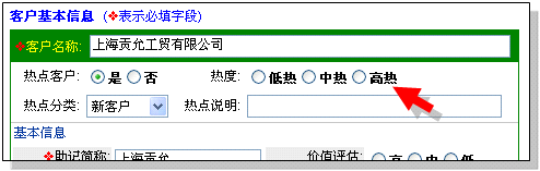 增加了热度管理,所以在新建客户时,看到如下图所示: