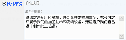 | a) | 具体事务指的是,通过文字描述,告诉销售人员该事件的执行要点和标准。举例如下: