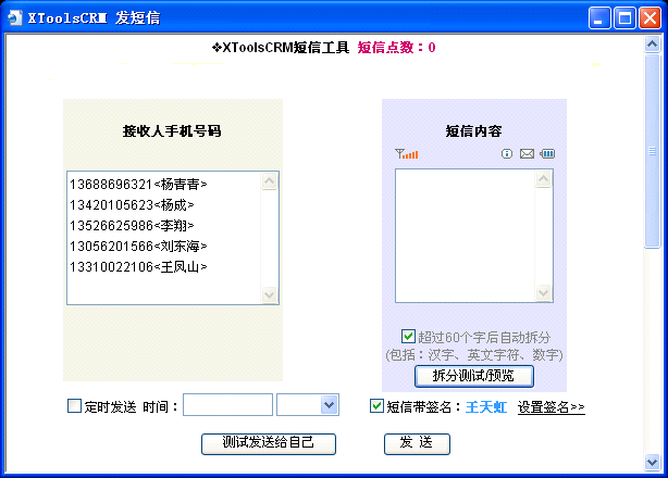 4.点击多个联系人手机号码后,即可看到如下所示的界面,即可同时给多个联系人发短信