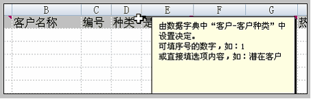 因为有些字段的内容是由用户在数据字典中自定义的,所以在填写这些字段内容时,需要以贵司帐户中数据字典的设置为准。另外,填写时,既可以填写数据字典序号,也可以直接填写数据字典内容。如举例中的“1”和“潜在客户”。 本文件中,灰色区域是客户信息,蓝紫色区域是联系人信息。如下图所示: