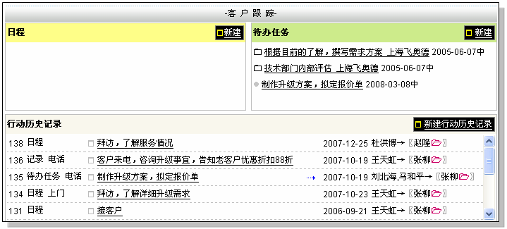 包括:日程安排、待办任务、行动历史。以及短信沟通记录。