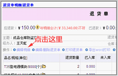 点击办理退货 点击办理退款,出现退货单新建界面,如下。