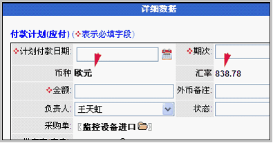 在付款计划中,自动读取对应采购单的币种和汇率,如下图所示: