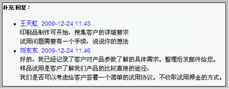 写回复 看过下级用户的周报后,必要时写回复。下级用户看到上级回复后,可补充回复。 回复内容往复记录,如下所示:
