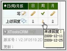 对回复的提示 对于下级用户来说,上级回复自己的周报后,可在周月报入口看到提示,如下: