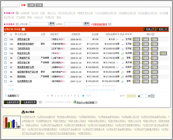 根据合约管理的关注点不同,分为:合同(主要用于服务型合约),订单(主要用于产品销售型合约)