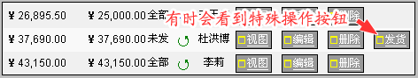 需要注意的是:在合同订单列表中的操作位置,有时会看到一些特殊的操作按钮。比如“发货”按钮,如下图: