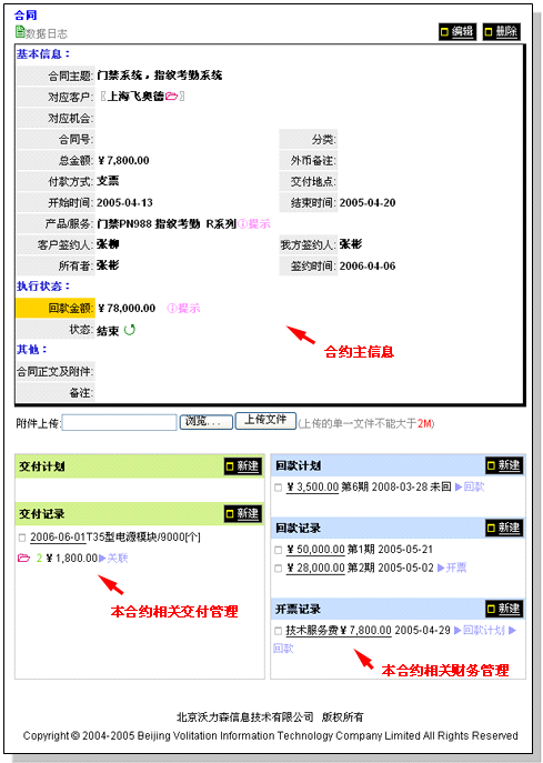 财务信息:根据合约签订的回款计划(应收款),实际回款记录,对应的开票记录