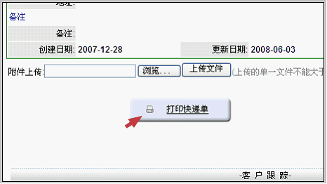 快递单的打印 快递单打印分为两个位置:客户视图中可直接打印,订单视图中可以在发货单操作中打印。 下面我们分别来讲述这两种方法: 在客户视图中打印 进入客户视图后,可以看到在客户基本信息和客户跟踪模块之间,有一个打印快递单的按钮。 点击该按钮,点击后,进入打印快递单向导界面。如下图: