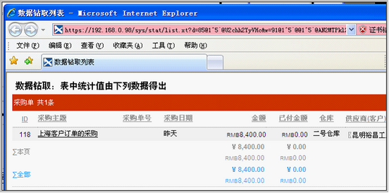 在此列表中,可以看到此订单关联的全部采购单与合计采购金额。对于企业的帮助在于:可以很容易了解到由该订单产生的采购,并迅速掌握这些采购所产生的总费用。有些贸易型企业是完全依照订单从多家供应商采购,由此功能整合显示关联采购单,合计采购金额,带给企业更多的分析帮助。 |