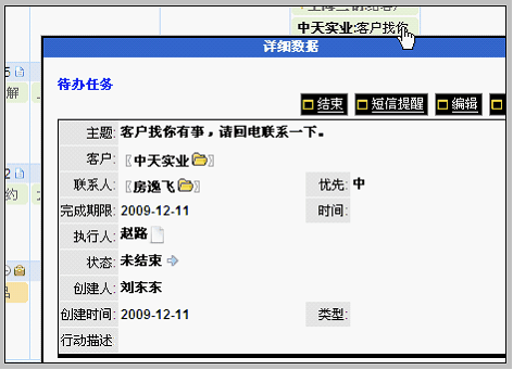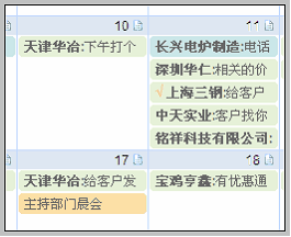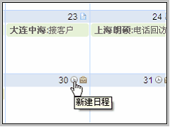 图中上海三钢的任务已经执行结束。 在周月视图上新建任务、日程和历史 在日期后面点击小钟表图标,即可新建这天的日程。